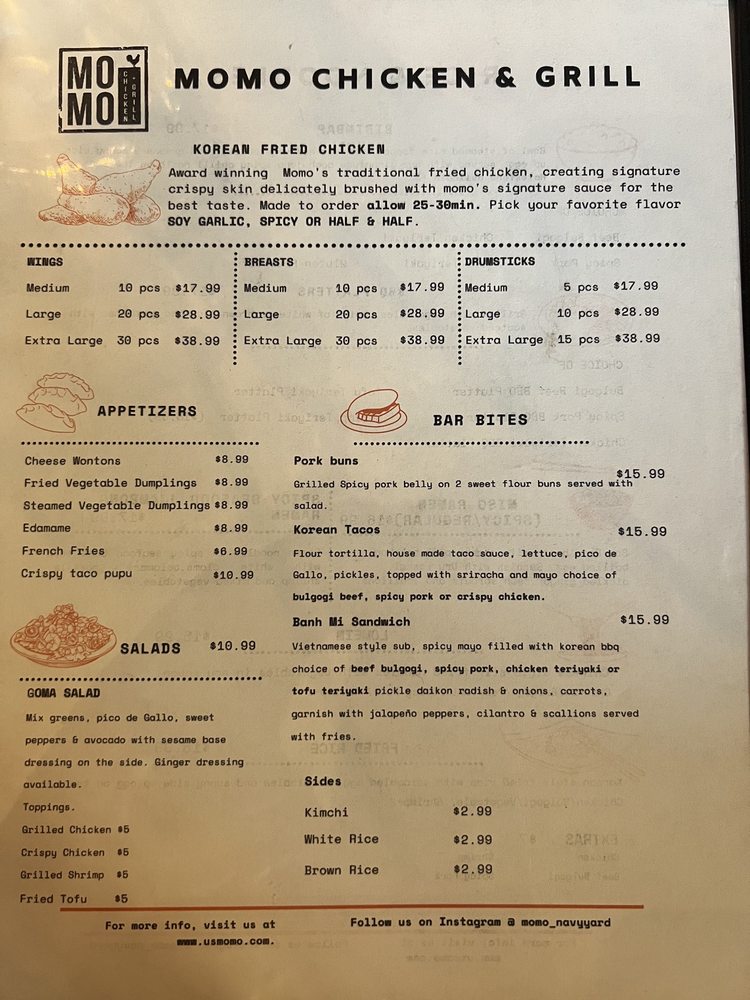 Welcome to Momo Chicken and Grill, a vibrant culinary gem situated in the heart of Washington, DC. Located at 1001 4th St SW, this Korean-style eatery has quickly gained a reputation for its delightful fusion of Korean flavors and classic Vietnamese cuisine. The passionate artistry behind each dish makes Momo Chicken and Grill a must-visit destination for food enthusiasts.